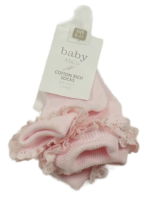 Nové - 2x ružové ponožky s volánikom s madeirou M&Co.