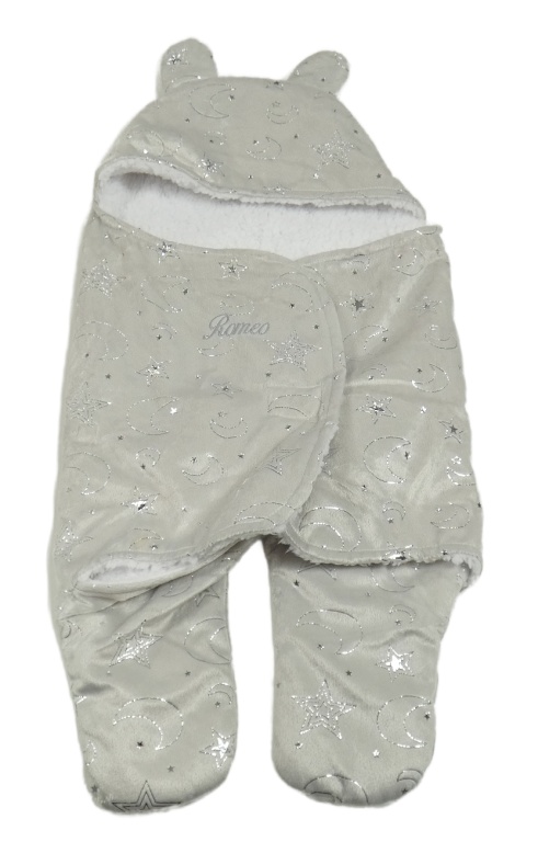 Šedá plyšová zateplená zavinovačka do autosedačky s hviezdami a kapucňou
