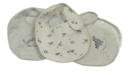 3x podbradník s dinosaury světlešedý+ smetanový+ pruhovaný Next