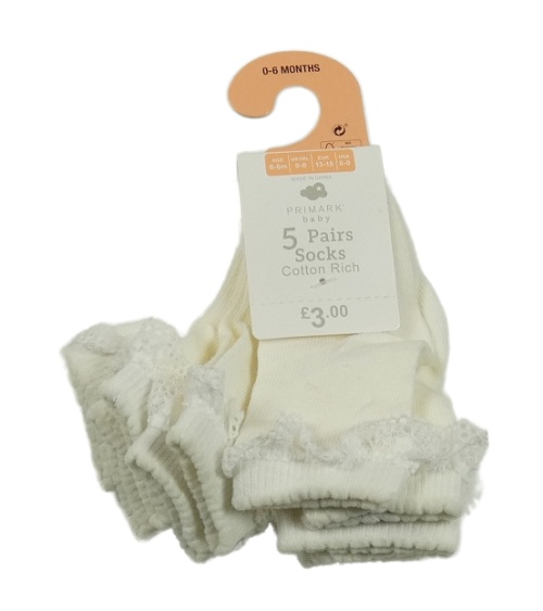 Nové - 5set - 5x Smotanové ponožky s volánikmi Primark