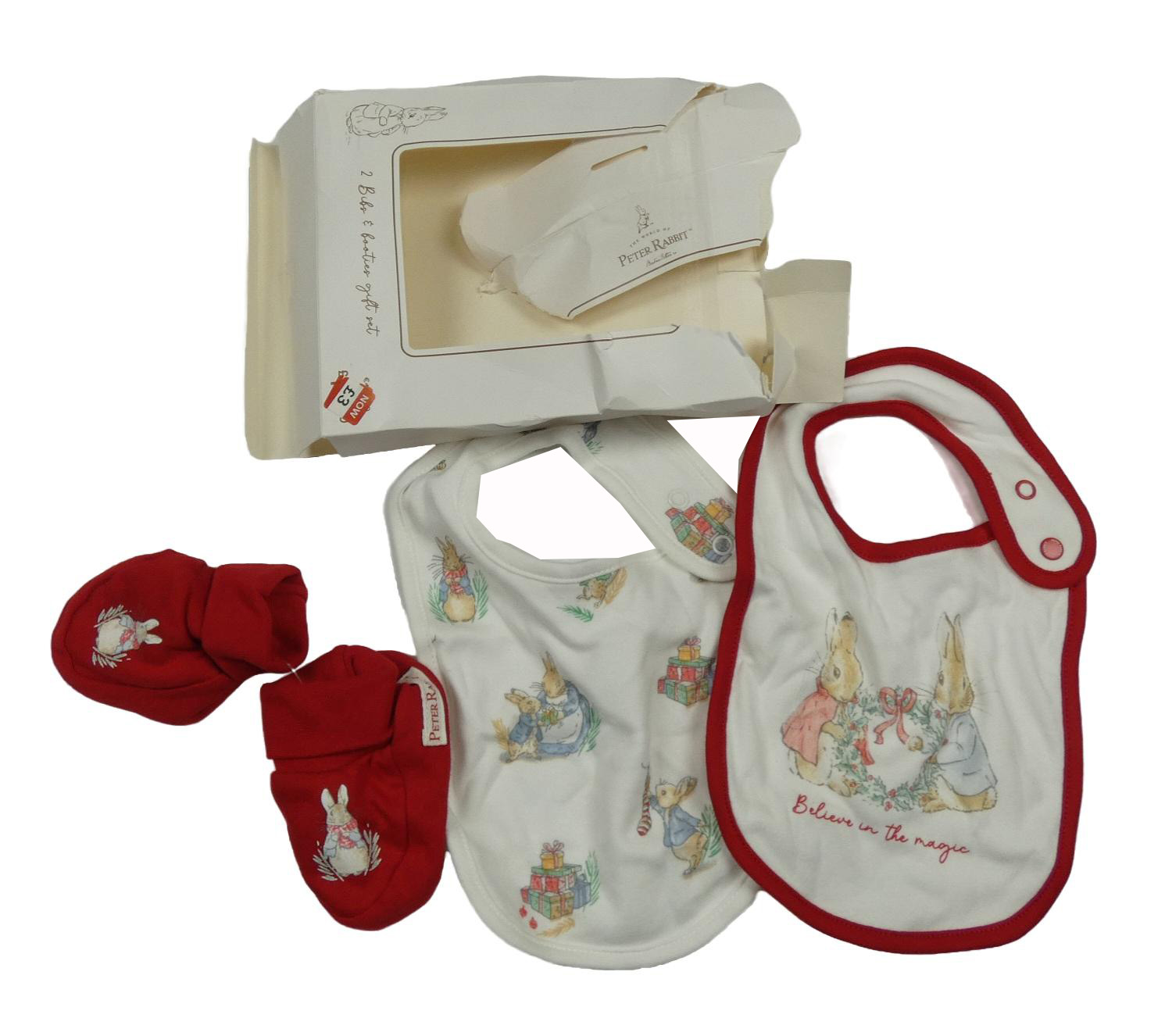 • Nové - 3 set - 2x bielo-červený bryndák + červené bavlnené cápačky s králikom