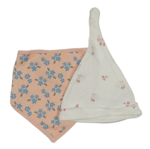 2 set - biela čapica s králíčky + růžový květovaný slinták