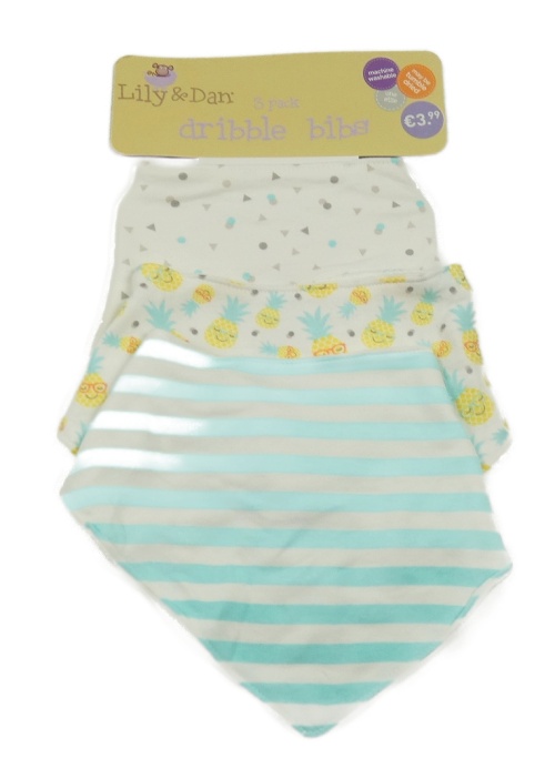 • Nové - 3x slinták - bílo-modrý pruhovaný + bílý s ananasy + bílý vzorovaný Lily & Dan