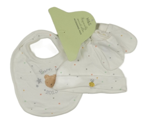 • Nové - 3set - Biela čapica s hvězdami + rukavice s hvězdami + podbradník s hviezdami a medvedíkom M&S