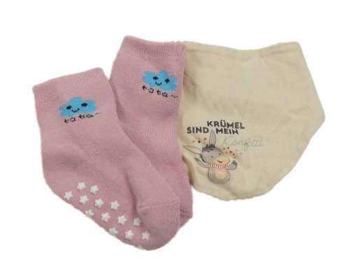 2set - Ružové ponožky s mrakem + béžový oboustranný slinták s oslom