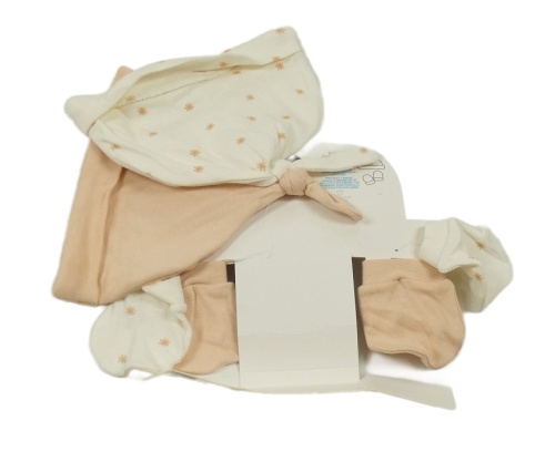 • Nové - 4set - Světlerůžová čepice + rukavice + bílá květovaná čepice + rukavice Primark