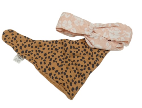 2set - Růžová kytičkovaná čelenka + béžovo-černý vzorovaný slinták
