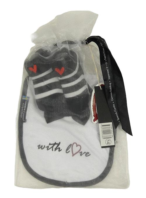 Nové - 2set - Bílý slinták s nápisem + čierno-biele pruhované ponožky so srdcem