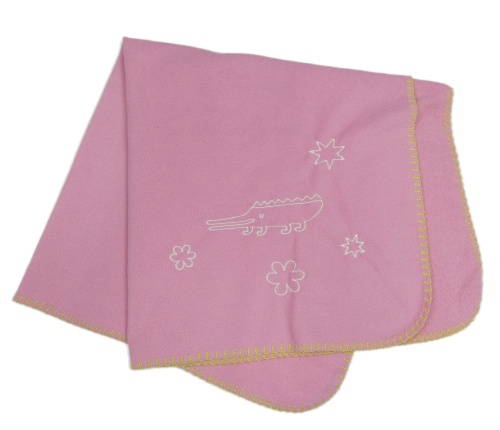 Ružová fleecová deka s krokodílom a kvietkami