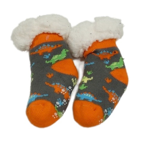• Sivo-oranžové zateplené ponožky s dinosaurami