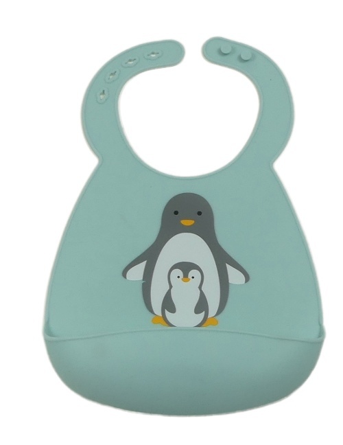 • Svetlomodrý gumový podbradník s tučňáčky a vreckom