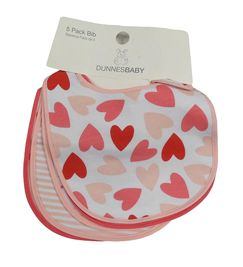 • Nové - 5x bryndák - bílý so srdíčky + 2x pruhovaný + bílý puntíkatý + růžový so srdiečkami