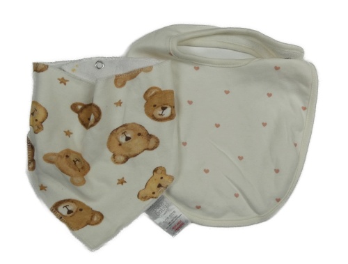 2set - Biely podbradník so srdíčky + bílý slinták s medvedíkmi