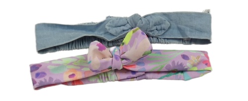 2x - Čelenka s mašlí - Světlemodrá rifľová Nutmeg, růžová s kytičkami