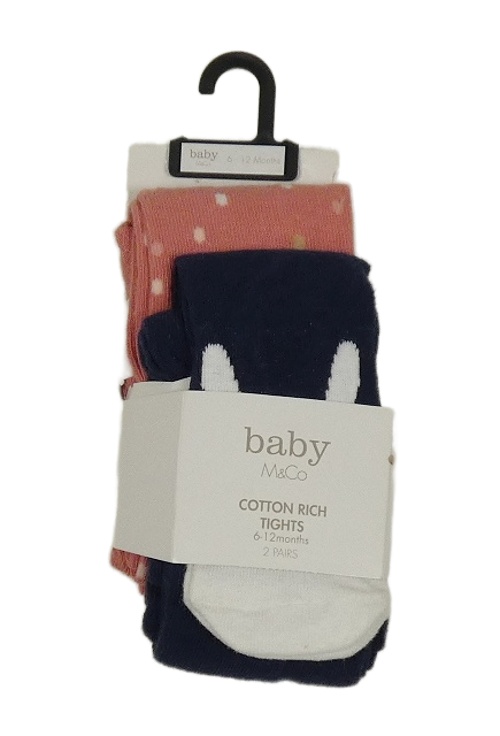 Nové - 2x - Tmavomodré + ružové pančuchy s obrázkami M&Co.