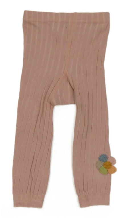 Starorůžové žebrované punčocháče bez šlapiček s kvetinou