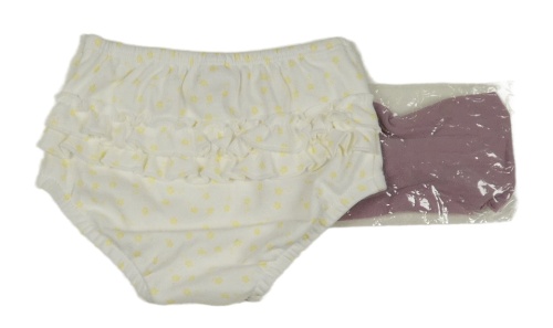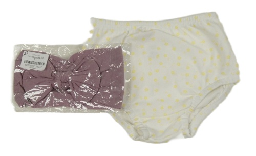2 set - bielo-žlté kvetované kalhotky pod šaty + fialová čelenka s mašlou