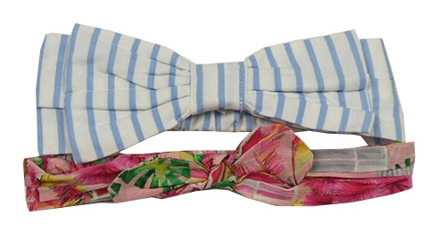 2x čelenka - bílo-modrá pruhovaná s mašlí + růžová kvetovaná s mašlou