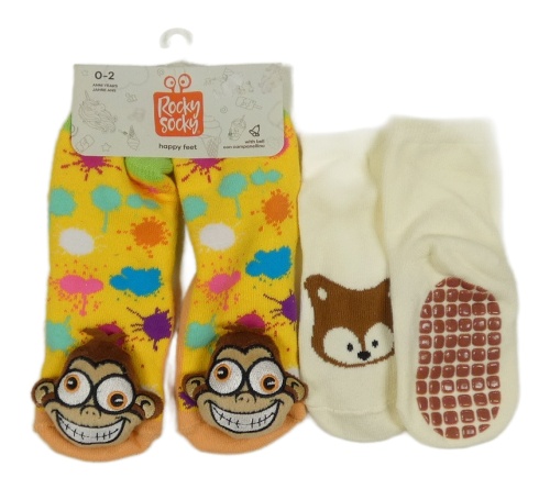 Nové - 2x - smetanové s liškami + žlté ponožky s chrastítky Rocky Socky vel. 18