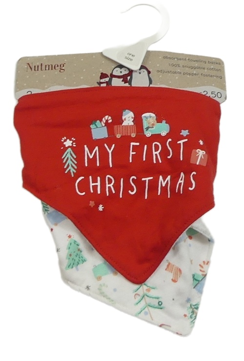 Nové - 2x slinták - Červený s nápisom a vlakem + bílý s vláčky Nutmeg