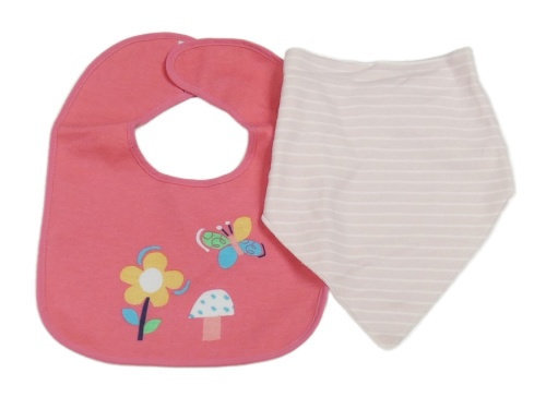 • 2set - Ružový podbradník s květem a motýlem + světlerůžovo-bílý pruhovaný slinták