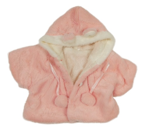 Světlerůžovo-bílý kožešinový kabátek s kapucí pro panenku