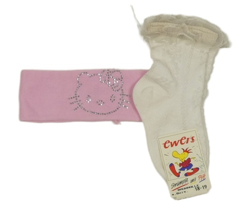 Nové - 2set - ružová čelenka s Hello Kitty + biele ponožky s čipkou