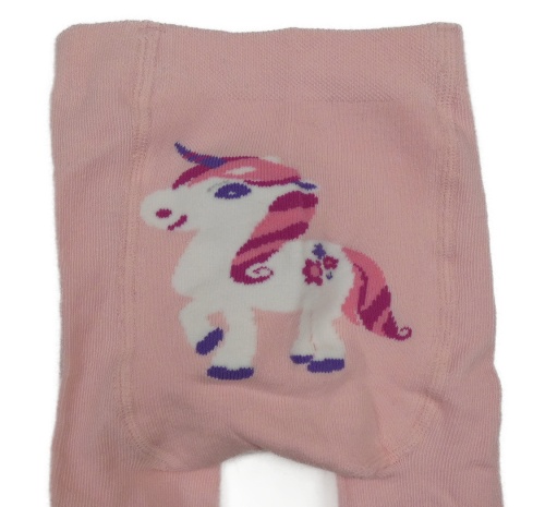 Svetloružová -ružové pančuchy s jednorožcami a kvetmi a bodkami