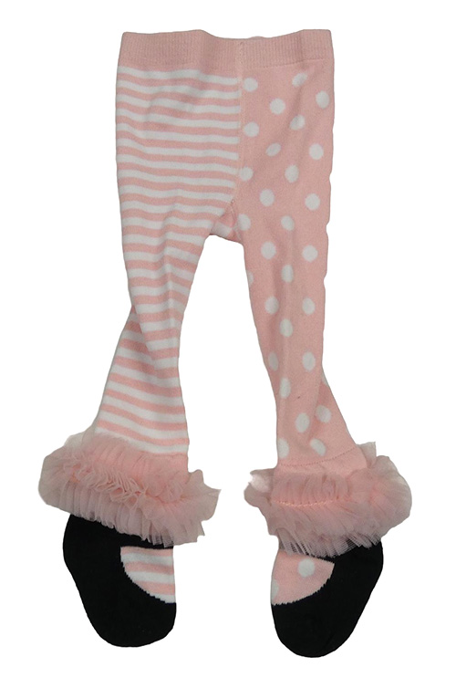Ružovo-biele pančuchy s pruhmi a bodkami