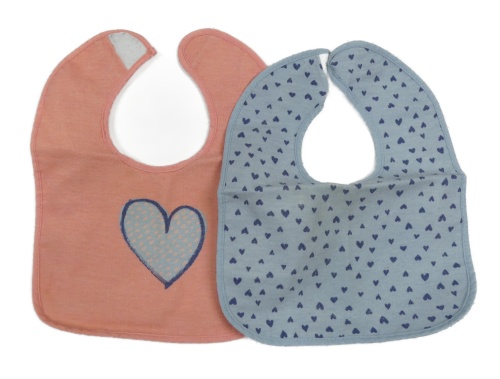 2x podbradník so srdíčky - lososový + svetlomodrý