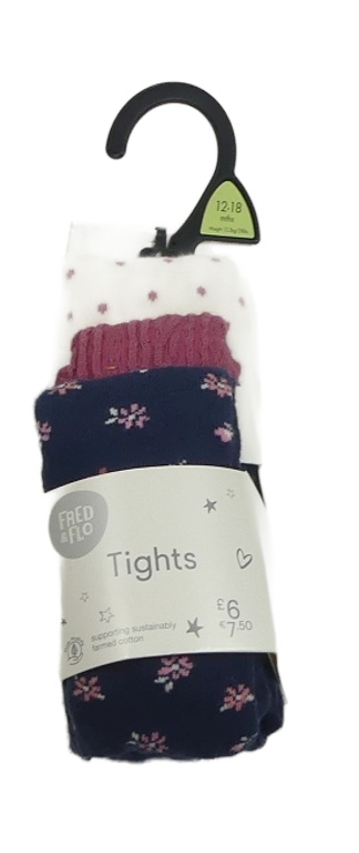 Nové - 3x punčocháče - bílé puntíkaté + růžové + tmavomodré s kvietkami F&F