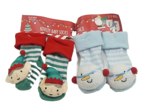 • Nové - 2x ponožky - zeleno-bílé pruhované s elfem + světlemodro-bílé pruhované so sněhulákem