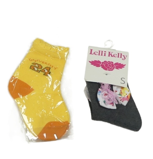 • Nové - 2x - Ponožky - Tmavožluto/oranžové s číslem, tmavošedé melírované s mašlou Lelli Kelly