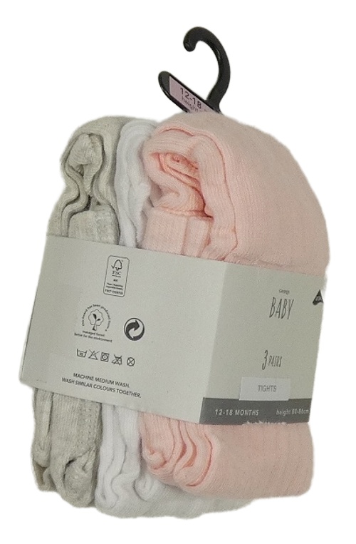 Nové - 3x žebrované punčocháče - růžové + bílé + světlešedé melírované George