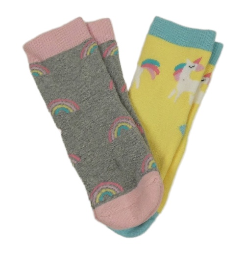 • Nové - 2x - Teplé ponožky - Šedo/světlerůžové melírované s duhami, žluto/světlemodré s jednorožci vel. 19-22