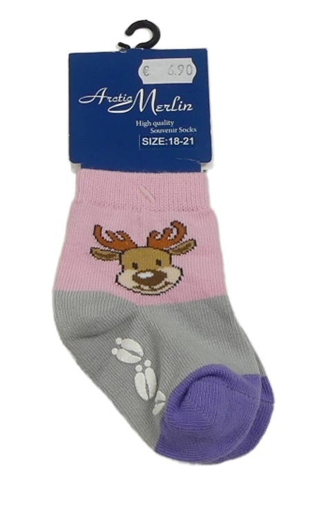 Nové - svetloružová -sivo-fialové ponožky so sobem vel. 18-21