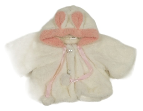 Bílo-růžový kožešinový kabátek s kapucí pro panenku