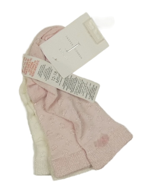 Nové - 2x ponožky so srdiečkami a mašlí - světlerůžové + smetanové JASPE CONRAN