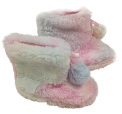 Nové - Ružovo-modré tónované chlpaté papučky s bambulkami vel. 21