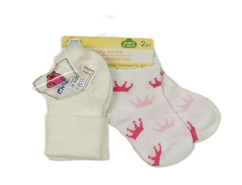 Nové - 2x - Ponožky - Smetanové, bílé s korunkami