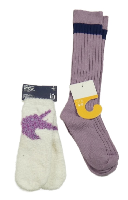 Nové - 2x set - fialové rebrované podkolenky + bielo-fialové chlpaté ponožky