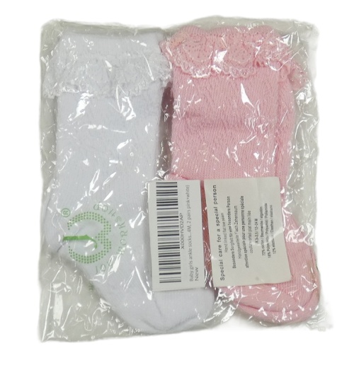 Nové - 2x ponožky s krajkovým volánem - bílé + růžové