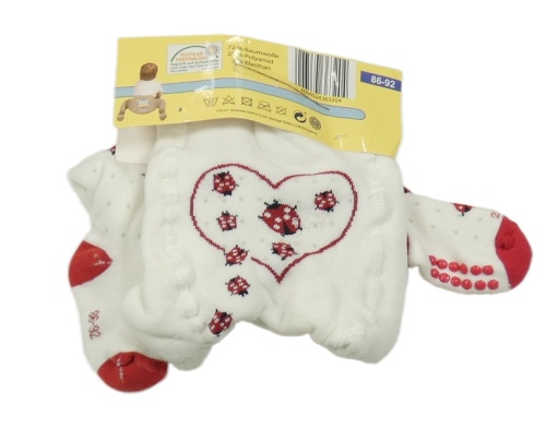 Nové 2set- Bielo-červené teplákové pančuchy s beruškami + ponožky
