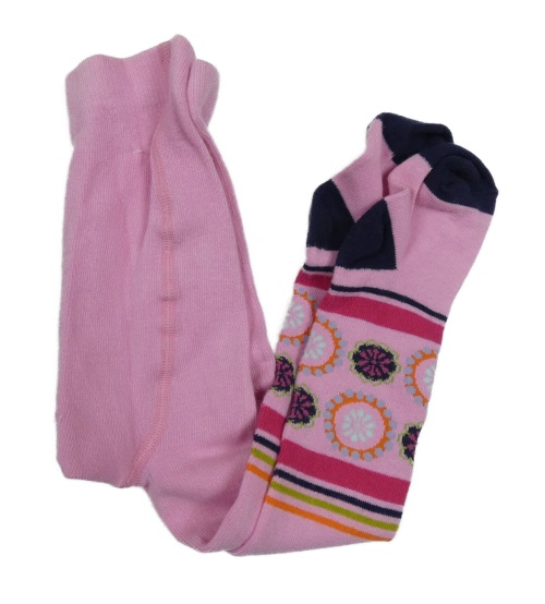 Nové - Ružové pančuchy s prúžkami a kvietkami