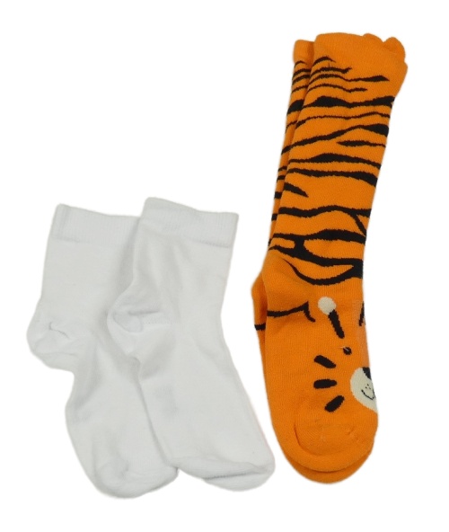 2x ponožky bílé+ oranžové teplé s tigrom
