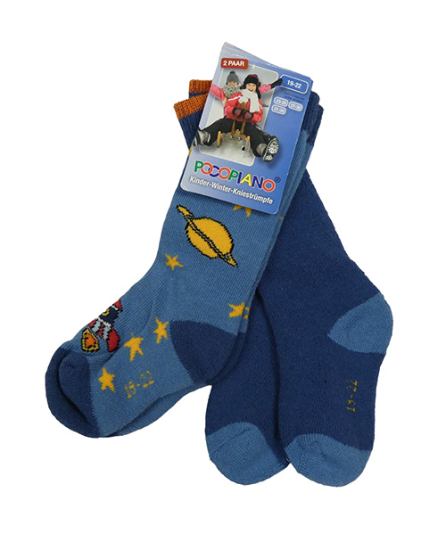 Nové - 2x ponožky - modré s hviezdami a raketou + tmavomodré Pocopiano