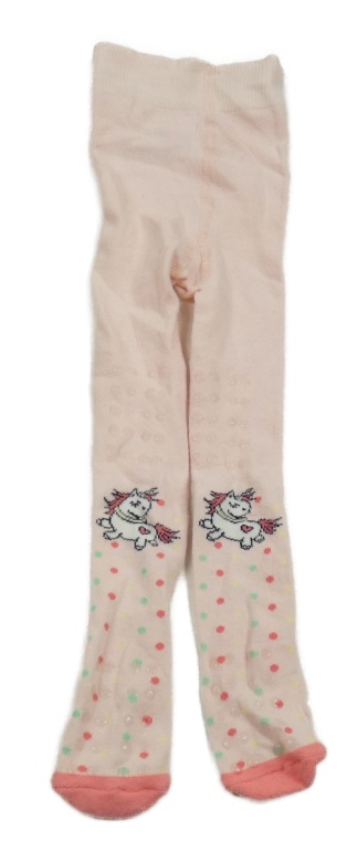 Svetloružové bodkované protiskluzové pančuchy s jednorožcami Lupilu