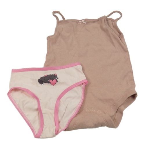 • 2Set - Svetloružové nohavičky s kočičkou + svetlohnedé košilkové body s mašličkou