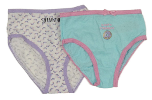 2x kalhotky - světlemodré s donutem + bílé s duhami