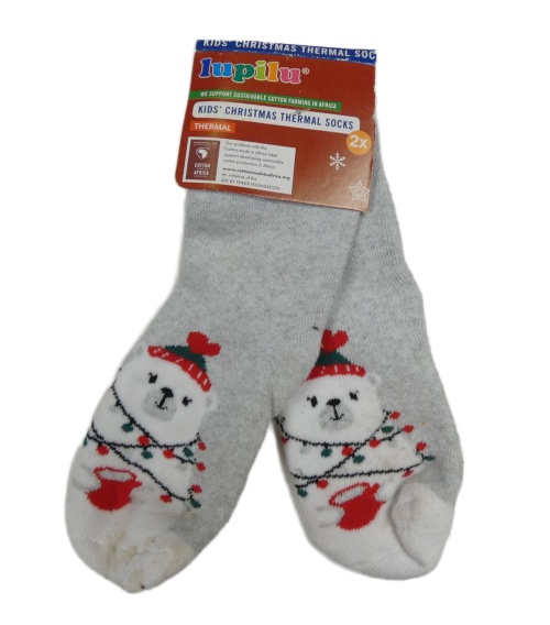 • Nové - sivé melírované thermo ponožky s ledním medvedíkom s vánočním motívom lupilu vel. 23-26